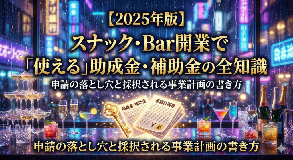 【2025年版】スナック・Bar開業で「使える」助成金・補助金の全知識|申請の落とし穴と採択される事業計画の書き方